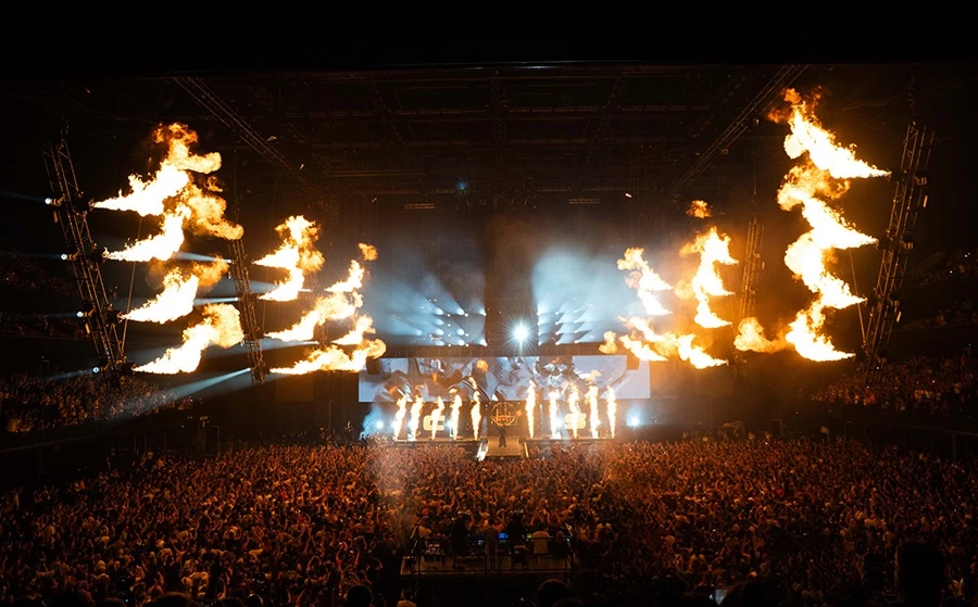Another unique feature on this tour that everyone will be talking about are the six floating trusses over the crowd, powered by the MoveKet automation system. Throughout the show they rise up in a striking v shape then lower right over the crowd’s heads, fully immersing the room in the spectacle. It’s like being at Creamfields or maybe a high-end Vegas club – only with more pyro!