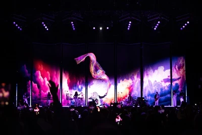 Another unique feature were projections onto Cyndi herself. Barco UDX 4K32 Laser Projectors were rigged at Front of House and used to project effects onto Cyndi and her band, bringing the on the screen content to life. For other lighting, Vari-Lite VL3600 were the heavy hitters, providing ambiance for the more intimate parts of the set and drama during transitions, all controlled with a full size GrandMA3.
