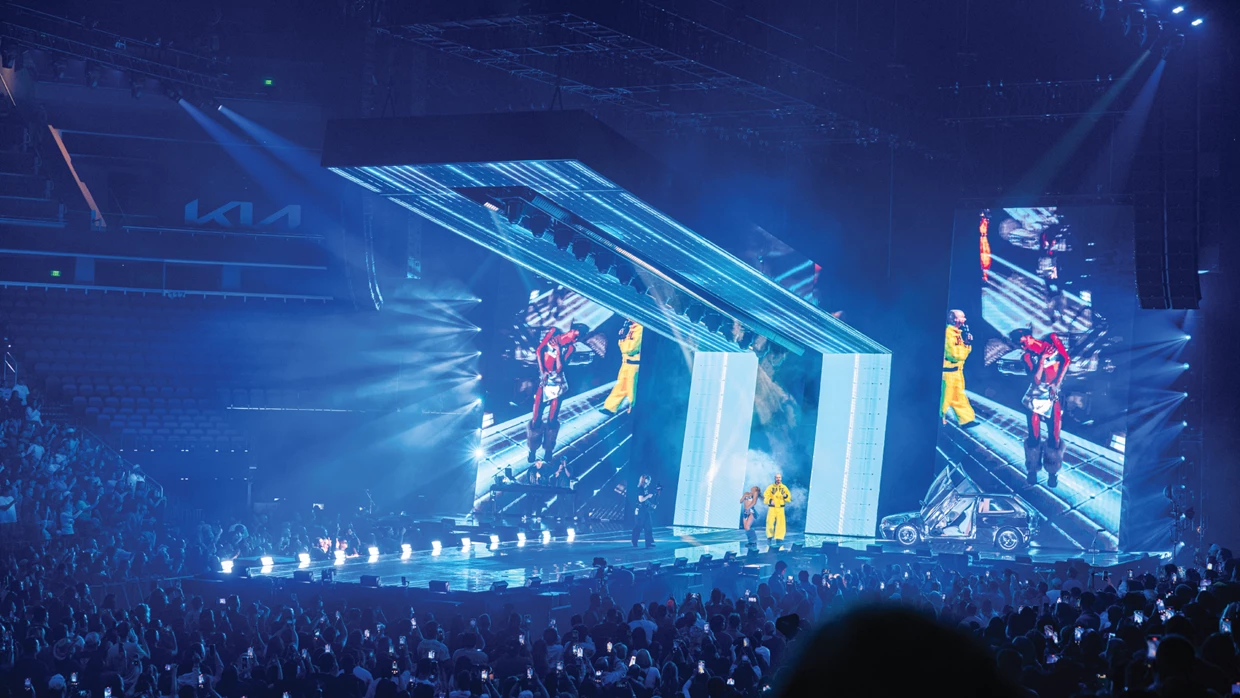 To deliver the show’s powerful sound, PRG rolled out a full L’Acoustics system, including the newest L2 cabinets for delays, alongside K1s, K2s, KS28 subs, Kara IIs and Arcs IIs—totaling 146 speaker elements across the venue.
