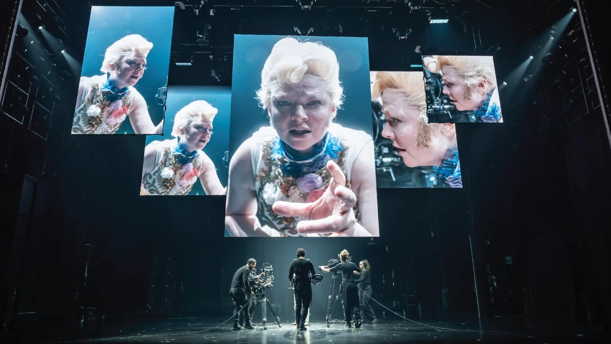 One significant challenge for the show was incorporating the immense amount of prerecorded material, about 90 minutes of content. Bergman explained, “We experimented with in-camera special effects like set extensions. All the imagery had to be created and composited in the studio with the actress added into the shot during the live performance.”