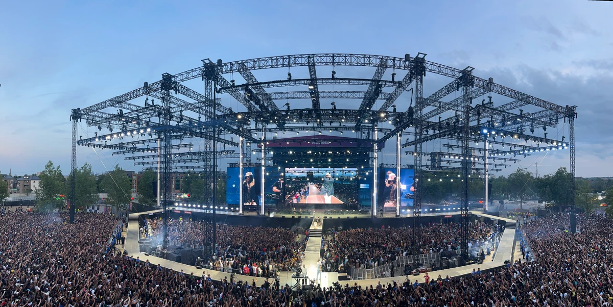 We were proud to return to Wireless this year, working under the guidance of Andy Grey working in close collaboration with Festival Republic and The Music Consortium. To support the scale and ambition of the 2025 edition, a new front-of-stage structure was introduced, enabling expanded lighting and flown automation capabilities. PRG UK and PRG North America came together to deliver custom band extras for Drake, featuring Moveket automation, which cloned the TAIT automation used for the touring system, allowing fixtures to fly and move over the crowd, adding a dramatic, dynamic layer to the show’s visual storytelling. PRG also supplied the main stage house lighting and rigging, helping bring to life one of Wireless’ most technically ambitious years to date.