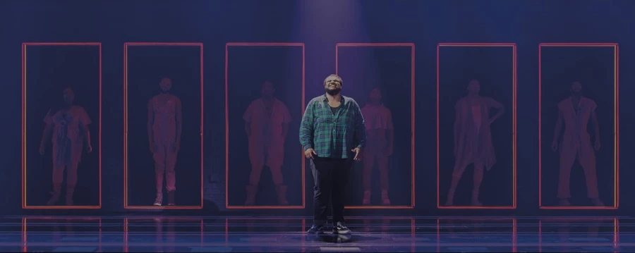 The stage was brought to life by a Tony-nominated creative team: scenic designer Arnulfo Maldonado, lighting designer Jen Schriever, and sound designer Drew Levy. Their greatest creative challenge: how to manifest the constant flow of Thoughts in Usher’s head on stage.