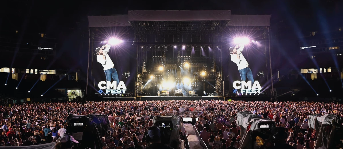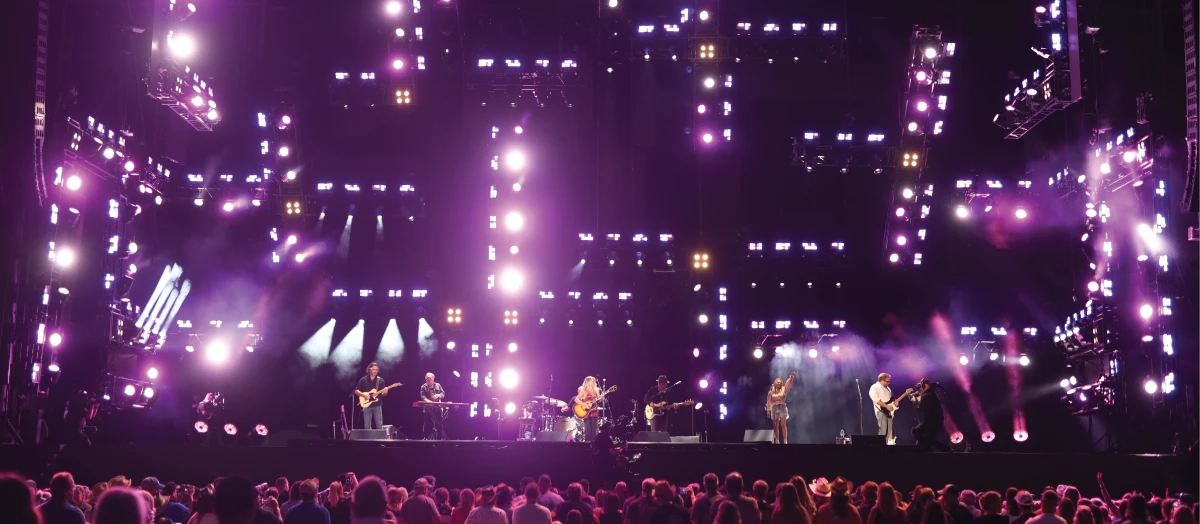 Last night, America watched as country music’s biggest stars graced the stage of CMA Fest 2022, which aired on ABC. The festival’s live event was filmed in June at Nashville’s Nissan Stadium and featured some of the genre’s biggest artists including Carrie Underwood, Billy Ray Cyrus, Jason Aldean, Luke Bryan, Wynonna Judd, Darius Rucker, Kelsea Ballerini and more, with Elle King and Dierks Bentley hosting. PRG provided both audio and lighting support. The uniquely dazzling lighting rig was designed by Mike Swinford and his team including Mark Carver as Lighting Director, Mark Butts and Andre Petrus as Programmers, and Cole Kiracofe as Gaffer. Burton Tenenbein of PRG acted as the Account Executive for the job. “My goal was to design something completely asymmetrical and out of the ordinary,” said Swinford. “I wanted the stage to take on a different look for all 18 cameras that were shooting it. To achieve interesting angles, rear followspots were asymmetrical as were the few static backlites.”