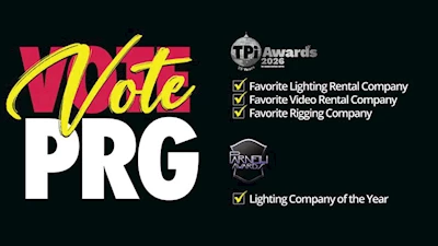 PRG is nominated for Lighting Company of the Year at the 24th Annual Parnelli Awards and for three TPi Magazine Awards: 'avorite Lighting Rental Company, Favorite Video Rental Company and Favorite Rigging Company