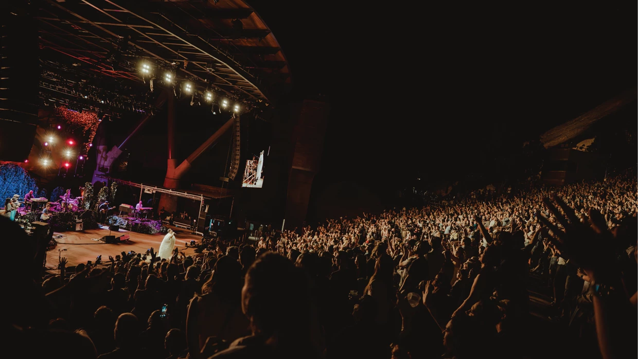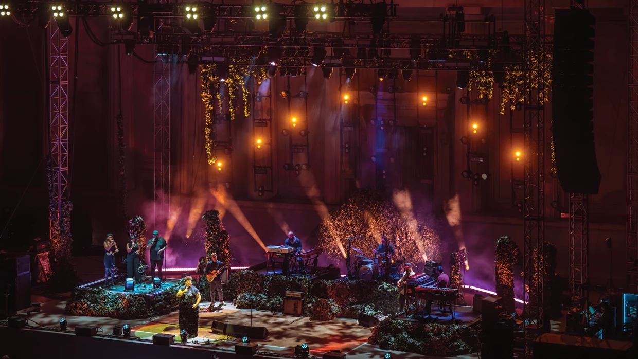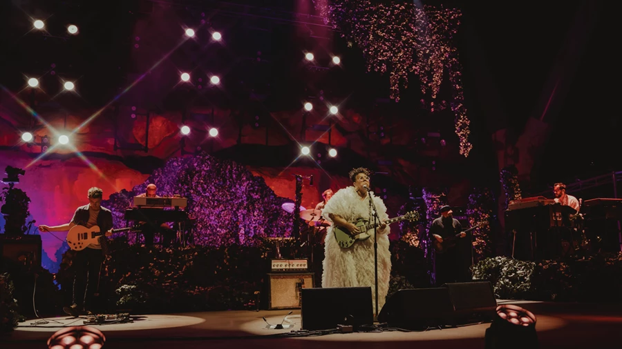 After eight years away, Alabama Shakes went back on the road this summer. In the time since, frontwoman Brittany Howard built a celebrated solo career, and many of the crew who supported her along the way also worked on this tour. As the sun faded and the stage lights took over, the band settled into a rhythm that felt both familiar and renewed. Every note was truly live—no tracks, no safety net—just musicians and microphones. For both the production crew and audience, that immediacy made the performance electric. Howard’s soulful vocals were backed by a production rooted in natural textures, with trees and vines woven into the set and bathed in saturated light, creating an atmosphere that felt organic, intimate, and deeply connected to the music.