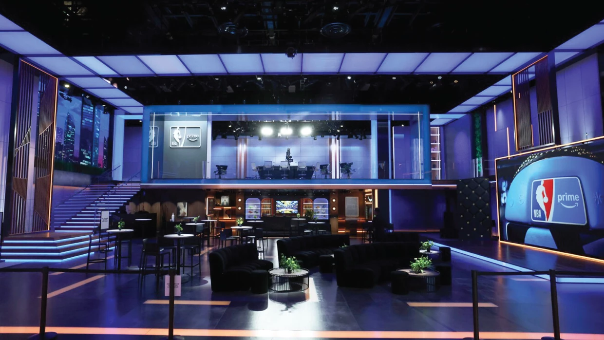 Amazon’s new NBA on Prime headquarters pushes far beyond the conventions of your average broadcast studio. As one of the largest and most technologically advanced sports sets in the U.S., the NBA House pairs sleek, LED-forward architecture with tactile scenic elements and a versatile lighting rig. The result is a hybrid environment—part immersive volume, part human-centered space—that reflects the next generation of sports broadcasting.