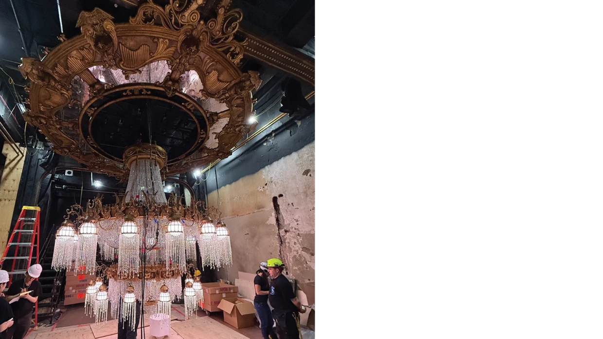 And for the legendary opera-house chandelier, Troy Atkinson, Managing Director, PRG, explains, “Given that the building is over a hundred-year-old and the ceiling is only 16’ high, we needed to bring in our own freestanding truss structures, which allowed us to test the entire setup in our shop ahead of time. The chandelier, which weighs 800 lbs. and is made up of four rings, is fixed in place throughout the performance. We automate each individual ring, which range in diameter from 1.5 to 13 feet, so as the top ring approaches the ceiling, the others continue to rise. This creates the illusion that the chandelier is larger than the room itself.”