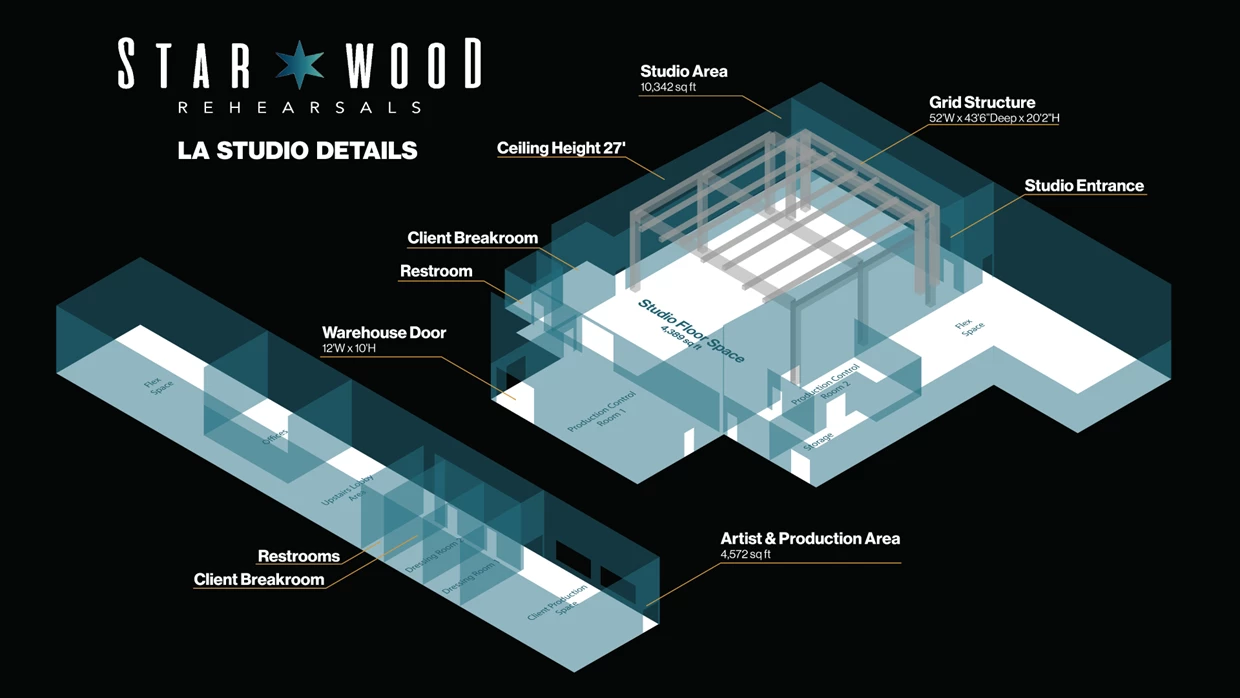 Starwood Rehearsals Los Angeles, adjacent to PRG’s LA super depot in San Fernando, offers a private and spacious studio for artists to refine their productions. With a 4,389-square-foot main rehearsal area, two production control rooms and various offices, dressing rooms, and flex spaces, it’s a comprehensive environment for both emerging and established artists. Access to PRG’s industry-leading lighting, audio, video, LED, and rigging gear ensures your creative vision comes to life.