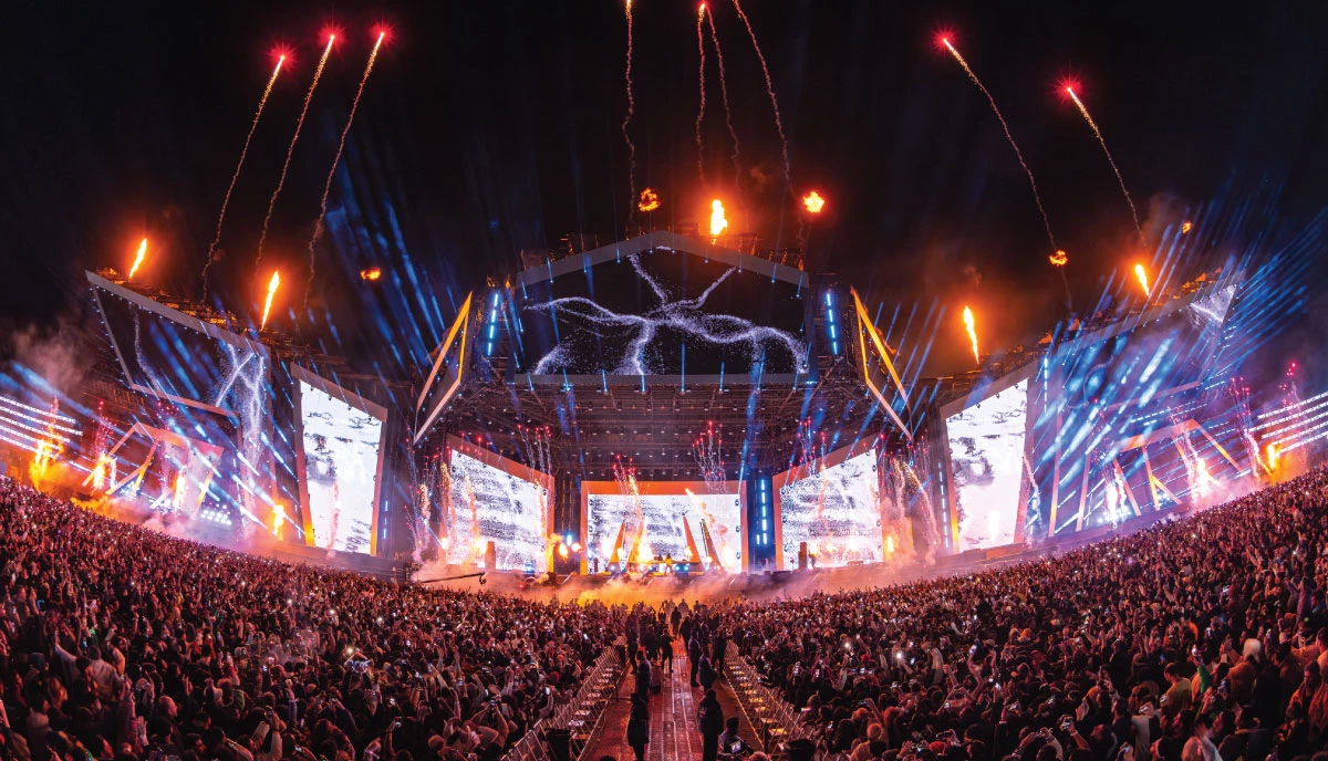 L’interprétation de décembre du festival SoundStorm MDLBEAST à Riyad a continué d’établir des normes d’excellence dans la conception d’événements tout en représentant un changement culturel révolutionnaire pour l’Arabie saoudite. L’ensemble du festival s’est étalé sur un site de 5,5 km construit spécialement pour accueillir 8 scènes dynamiques où plus de 150 actes ont été joués pendant trois jours pour plus de 450000 visiteurs. L’ampleur de l’événement et le défi de construire dans un désert incarnent l’interaction délicate entre la créativité et la logistique, nécessitant un effort d’équipe mondial pour orchestrer. Au cœur de cette symphonie se trouvait Alex Reardon, directeur de création et concepteur principal de Silent House, la firme de design chargée de façonner l’identité visuelle du festival. PRG a joué un rôle central dans le soutien de la vision de Reardon, en fournissant le rigging, la vidéo, l’éclairage, l’audio et l’automatisation pour la pièce maîtresse du festival, la scène Big Beast.